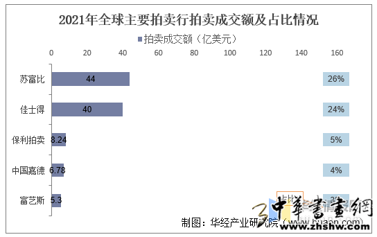 2021年全球主要拍卖行拍卖成交额及占比情况
