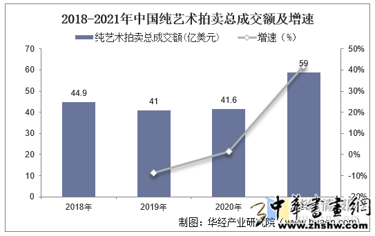 2018-2021年中国纯艺术拍卖总成交额及增速