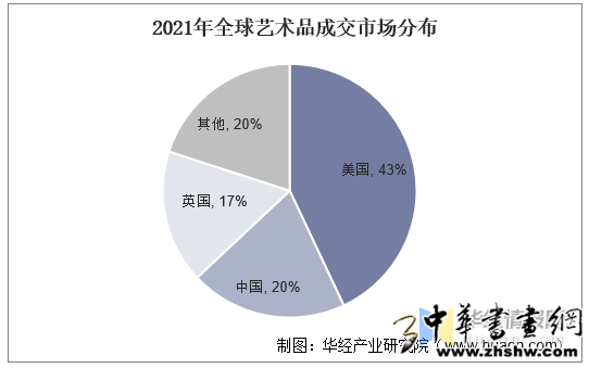 艺术品拍卖行业是集艺术品鉴定、评估、拍卖、展示、诚信等服务于一体的总称。分国家来看,2021年,美国继续保持全球最大艺术品市场的地位,占市场总成交额的43%;中国位列第二,占比20%;英国排在第三位,占比17%。