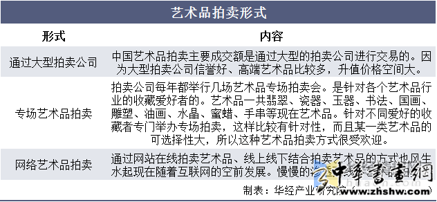 艺术品拍卖是指将艺术品通过公开竞价的形式,转让给最高应价者的买卖方式。艺术品拍卖形式包括通过大型拍卖公司进行交易、专场艺术品拍卖以及网络艺术品拍卖三种。