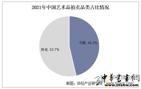 书画艺术品作为我国历史文化的传统艺术品,在拍卖品类方面,我国书画艺术品占据最大的市场份额,2021年占艺术品总成交额比重的46.3%。