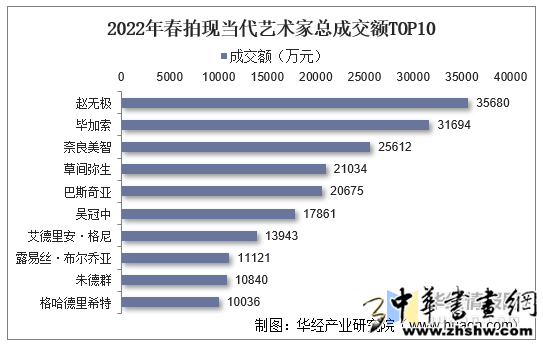 从现当代艺术家作品的总成交额来看,2022年春拍,赵无极以3.57亿元的成交额位列第一,毕加索紧随其后,成交额为3.17亿元,奈良美智排名第三,成交额为2.56亿元。